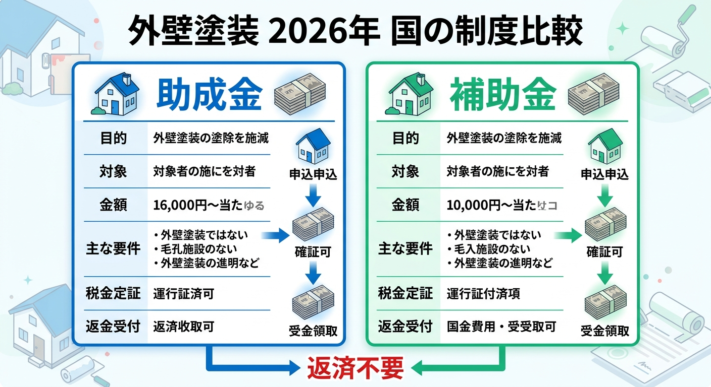 外壁塗装の助成金と補助金の違いは?2026年に使える国の制度を徹底解説